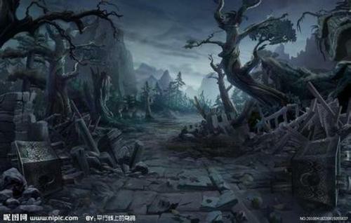 夜色濃重,就像是已經(jīng)死了,黑色的血蜿蜒覆蓋了天與地。月亮孤零零地盤旋在上空,光線暗淡,好不慘白。淅瀝的雨下在黑夜里,所有東西都很潮濕,樹木和泥土的皮膚開始潰爛一般,空氣中彌漫著幾乎要令人窒息的腐臭味。