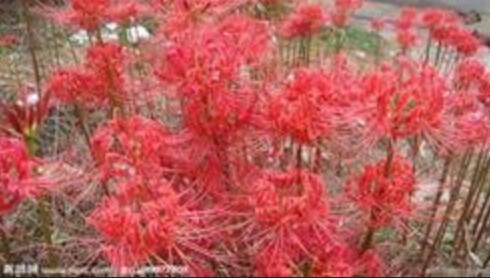 彼岸花---傳說中冥界唯一的花,也叫引魂花或火照之路。彼岸花是開在黃泉之路的花朵,在那兒大批大批的開著這花,遠(yuǎn)遠(yuǎn)看上去就像是血所鋪成的地毯,又因其紅的似火而被喻為“火照之路”,也是這長(zhǎng)長(zhǎng)黃泉路上唯一的風(fēng)景與色彩,人就踏著這花的指引通向幽冥之獄。