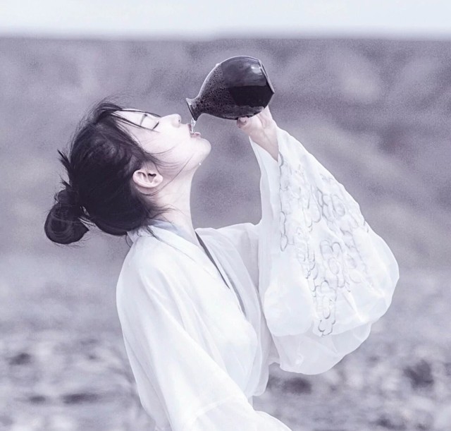 憨憨晴待我長(zhǎng)發(fā)及腰,血染青絲白袍。江山彈指為君倒,此念卿宇枯槁。