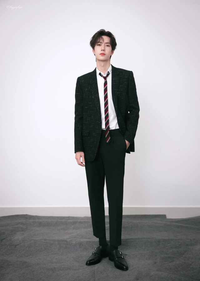 王一博一身hedi設(shè)計(jì)的金絲格黑色西裝外套,搭配著白色襯衫和英倫風(fēng)尚的紅藍(lán)條子領(lǐng)帶,黑色的西裝褲下一雙西裝皮鞋,更加能襯托出他那修長(zhǎng)的雙腿。