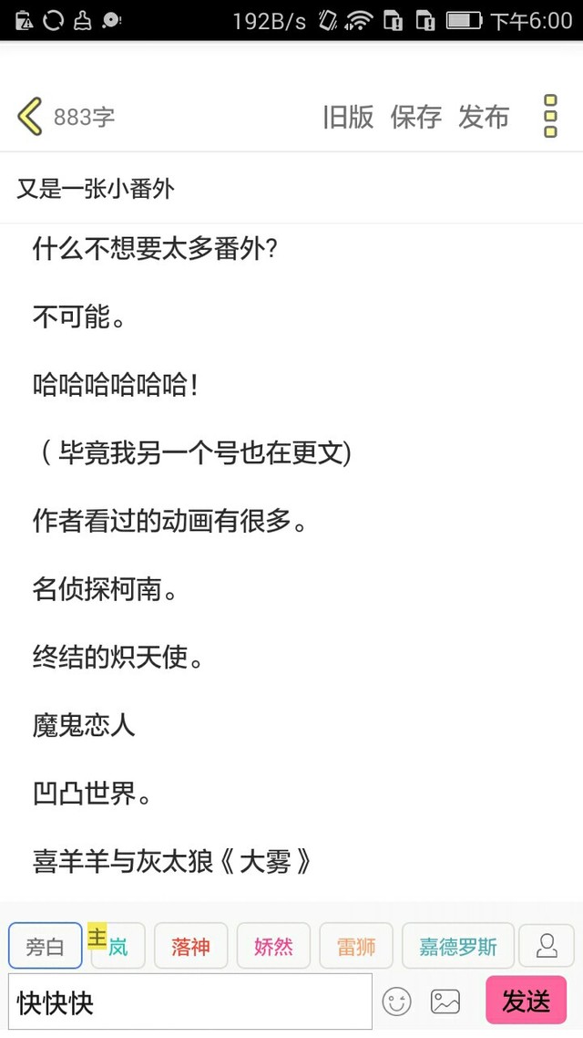 估計(jì)我以后會(huì)每兩張正文一張番外。