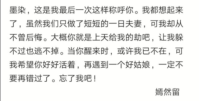 此時(shí),北堂墨染也醒了過來,他坐起身便看到枕邊有封書信