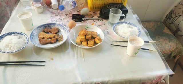 菜名:金磚山,長牛排(牛排是疫情前就買的。)還有蒸雞蛋,希望各位能諒解,作者也是心累啊。