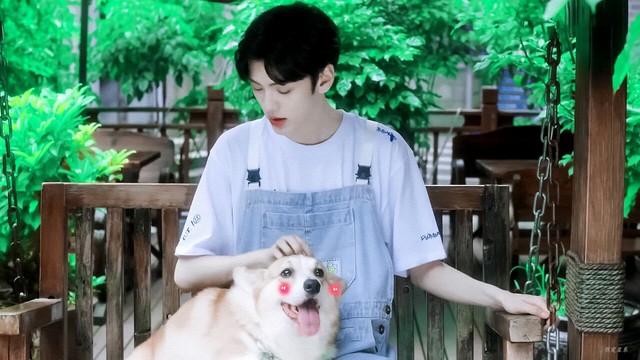 畢雯珺摸著開心的頭,開心舒服的哼哼著