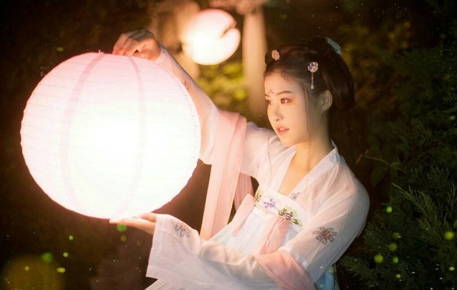 如花似的女子穿著淡雅的衣裳,頭發(fā)挽起,上面有花樣的簪子。