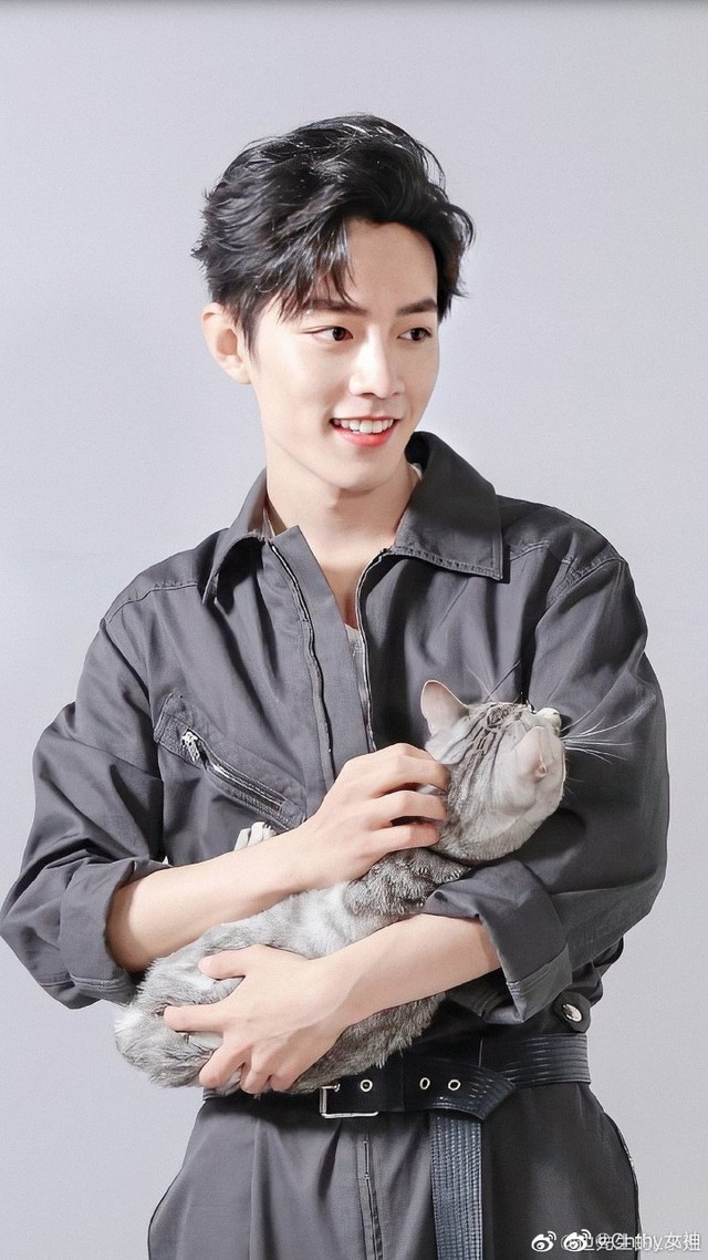 肖戰(zhàn)見了貓咪,彎腰把它抱在懷里順毛
