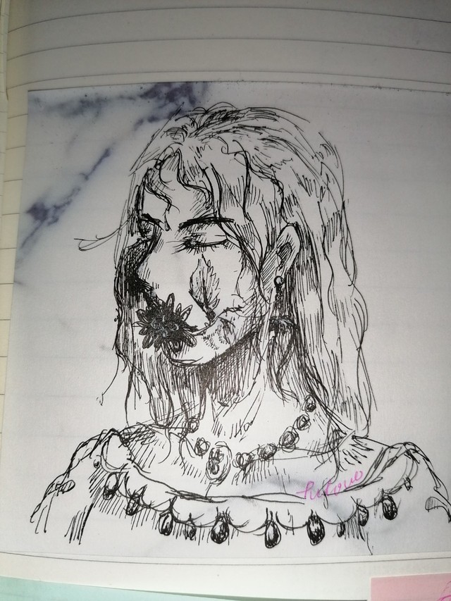 是嘴畫毀了不得已改成了叼花??
