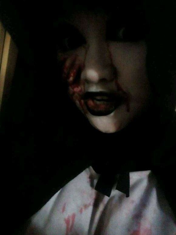 突然,女人的頭發(fā)散開了,她臉色蒼白,面如死灰,嘴唇卻紅得似血。