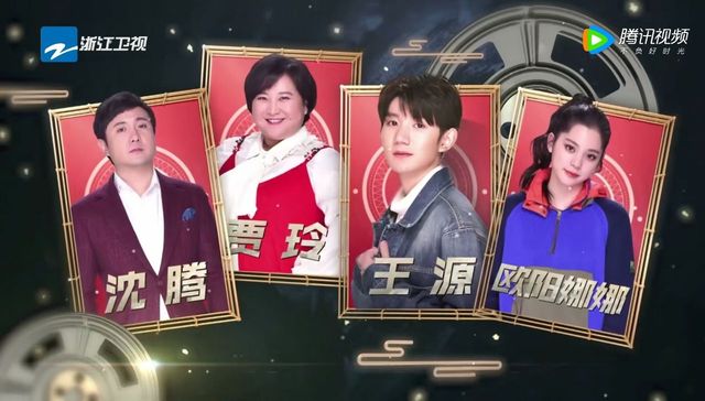 臺上的人調換了位置,賈玲和沈騰站在沈濤的右手邊,而歐陽娜娜和王源則是站在了另一邊