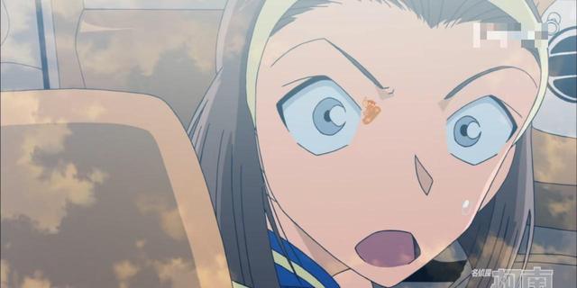 而與此同時,園子剛好經(jīng)過這里 ,透過后車窗看見了柯南飚滑板的這一幕 。