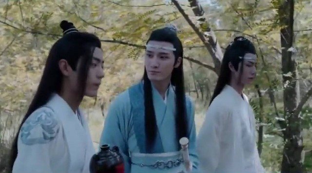 魏無羨又把枇杷扔給江澄。藍曦臣看向藍忘機