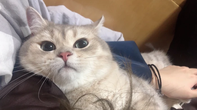 小貓乖乖地窩在江遇的懷里。
