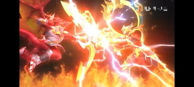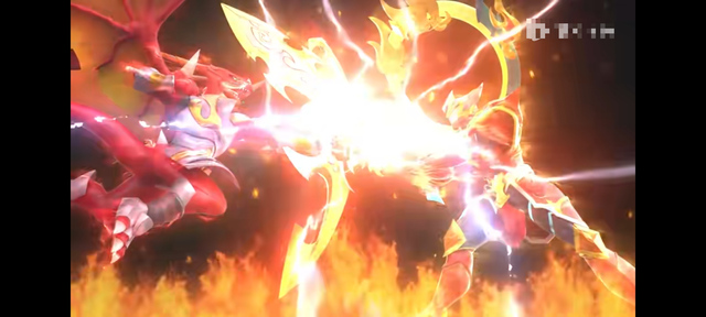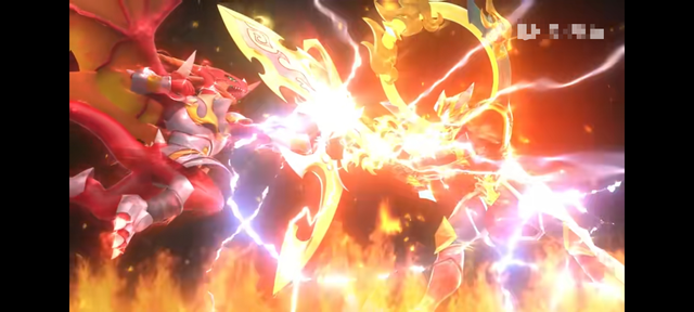 兩枚戰(zhàn)陀的戰(zhàn)斗魂也在兵刃相交著,火焰與火焰的斗爭伴隨著紅色的閃電,下一秒,爆炎戰(zhàn)神便被圣焰紅龍給猛的彈開,隨后,再次猛地相撞,分開后又猛地相撞,摩擦出劇烈的火花,火花四射,最后分開來爆炎戰(zhàn)神來到戰(zhàn)斗盤的一旁,下一秒,星野便再次下達(dá)命令道