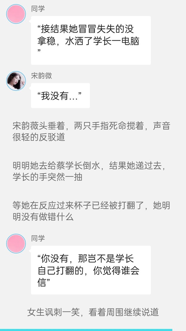 同學(xué)“你沒有,那豈不是學(xué)長自己打翻的,你覺得誰會信”