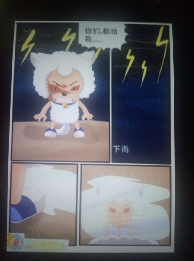 此時(shí)喜羊羊發(fā)怒,眼睛變紅