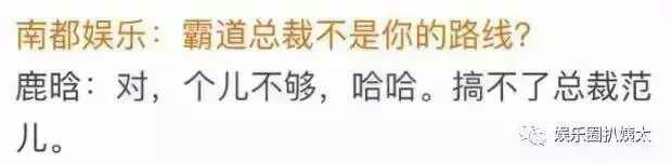 問(wèn):霸道總裁不是你的路線? 鹿:對(duì),個(gè)兒不夠,哈哈。搞不了總裁范兒。