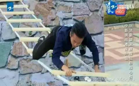 還有這個(gè),鄧超也爬繩索環(huán)節(jié)很辛苦。