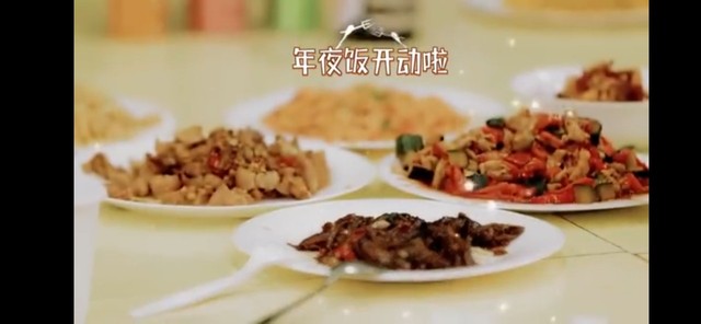 大家拿起筷子夾著桌子上面豐富的菜肴,臉上滿臉幸福的表情