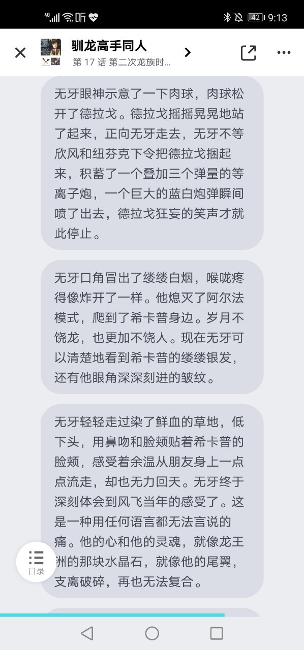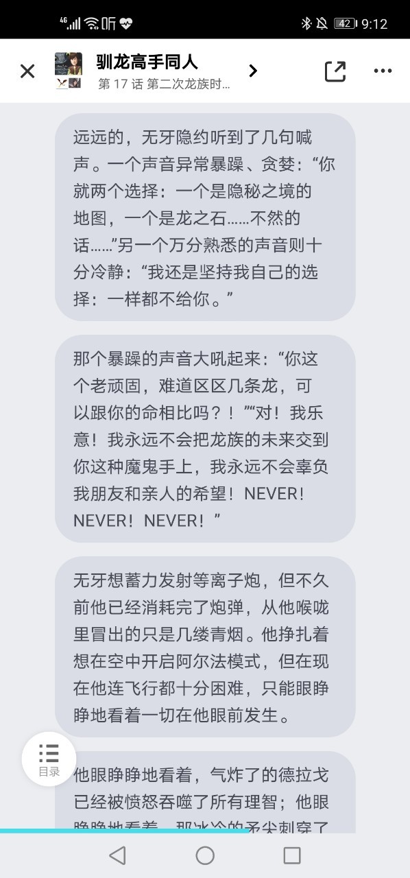 前兩天,黑龍王也不知道是老年癡呆還是怎么樣,莫名的就開始發(fā)瘋,把龍王洲東北方的一塊比較大的水晶石柱硬是給撞裂了,鬧出了不小的亂子,無牙的尾翼也被水晶碎片扎壞了。處理這件事徹底耗盡了無牙最后的耐心。