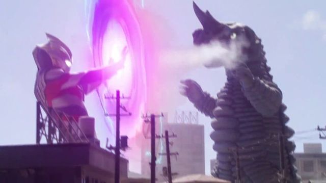 特利迦和??ɡ约皦?mèng)比優(yōu)斯正在與塔爾塔羅斯交戰(zhàn)在空間納拉克里