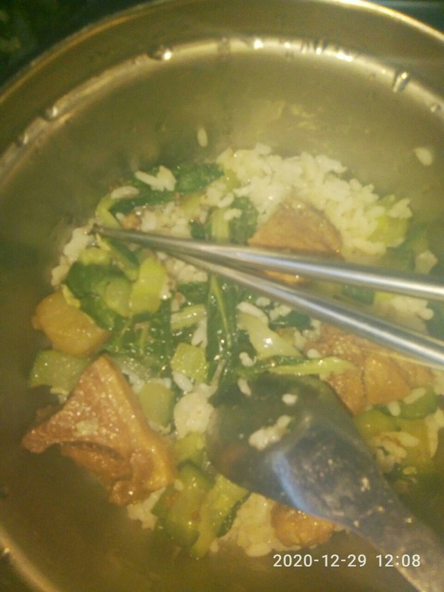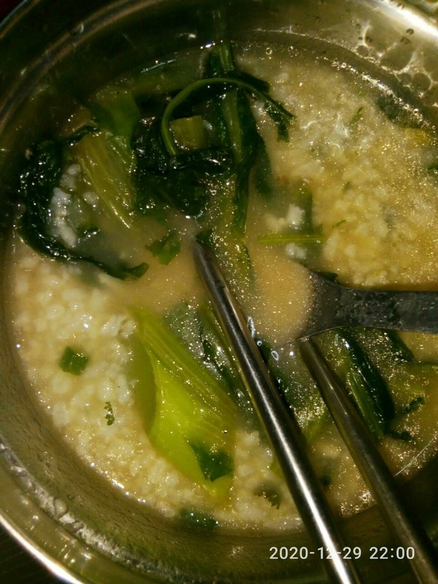 白天粥雞肉混合粥,油麥菜