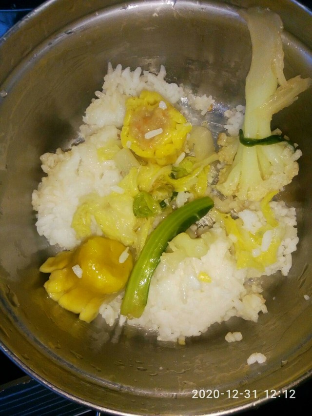 米飯,雞肉炒土豆,白菜,菜花