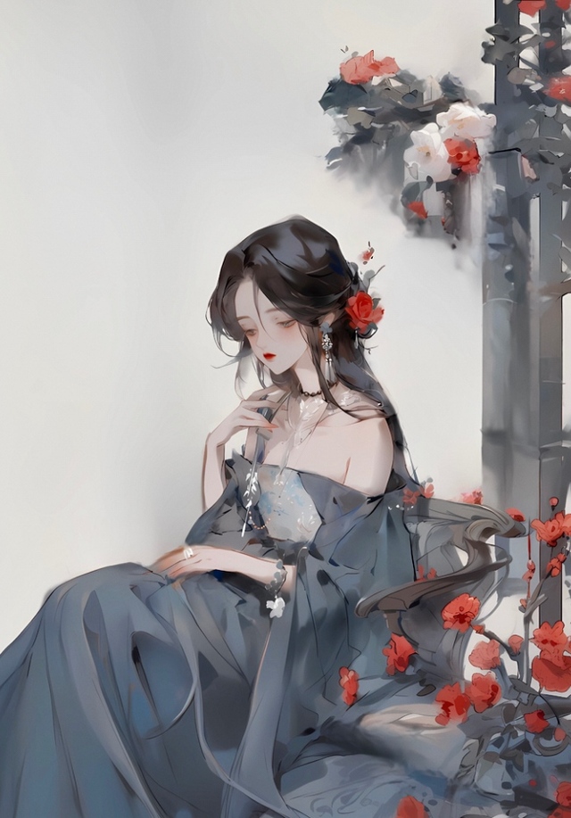 你身穿一件黑色的晚禮服,烏黑的長發(fā)上戴著些許紅色的玫瑰發(fā)飾。耳朵上的流蘇,在金色的陽光下閃著漂亮的光輝??瓷先ベF氣十足。像是一朵被嬌養(yǎng)的紅玫瑰。