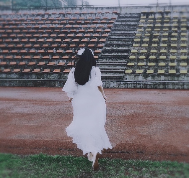 托著雪白的婚紗,她像一個逃婚的新娘子走著。