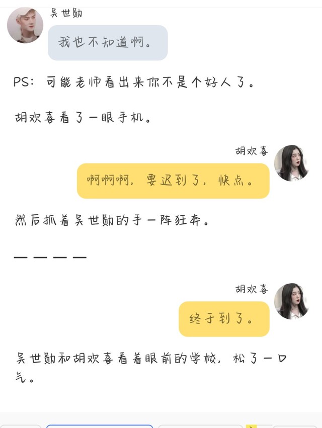 胡歡喜和吳世勛不需要住宿,(吳世勛媽媽給她倆在學(xué)校附近買了個(gè)公寓,美名其曰:培養(yǎng)感情。胡歡喜表示,我和他培養(yǎng)什么感情。)所以他倆就直接去教室了。