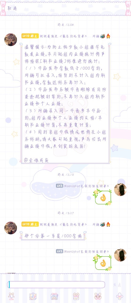作者大大我呢是你們的作者,你們可以叫我的小名淋兒!我呢這也是第1次寫,寫的可能不好,有時(shí)候可能會(huì)出現(xiàn)字錯(cuò)了或者語(yǔ)句不通順什么的,希望你們多多見諒,在評(píng)論下面告訴我。還有的話就是不要黑每一個(gè)作者,包括我在內(nèi)嘿嘿~因?yàn)槲覀兌际腔撕芏鄷r(shí)間精力來(lái)寫這個(gè)東西,如果有寫的不好的地方,你們可以提出來(lái)!