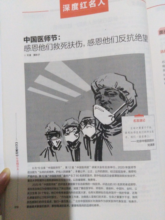 隸華因?yàn)檫@本書(shū)是隨記嘛,以前我看一本算是雜志類型的讀物,《作文素材》,里面有很多引人深思的故事和報(bào)告,所以有時(shí)候我也會(huì)在旁邊記一下我的想法,正好我最近找到了,就跟大家分享一下吧。