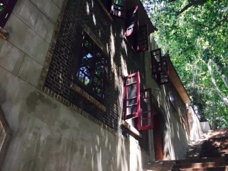 爬山虎爬到墻上,形成綠墻。