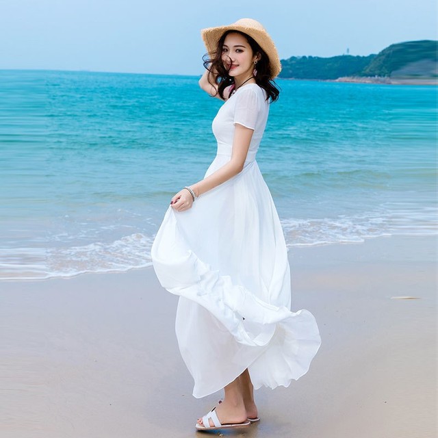 趙燕穿的是白色的裙子
