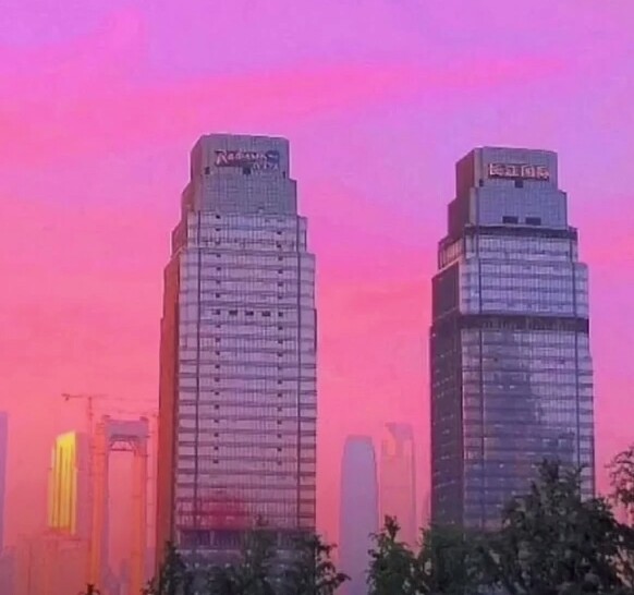 現(xiàn)在夕陽(yáng)正悄悄的落山擱著江,看到遠(yuǎn)處一座大樓,它很亮眼,上面有長(zhǎng)江國(guó)際幾個(gè)大字。