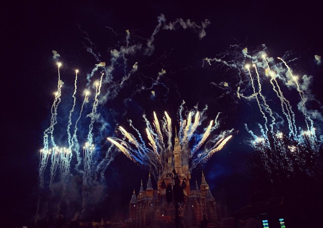 突然,絢麗的煙花像星空一樣在夜空里閃耀。