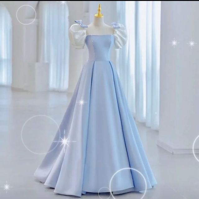 夏諾進房間換了衣服,一件藍色的禮服。