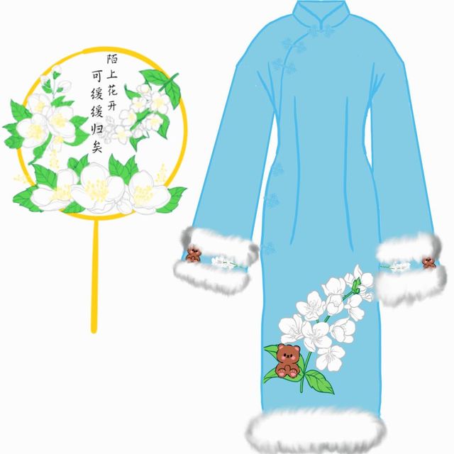 穎玖夢這三套衣服和團扇是穎兒自己設(shè)計,自己畫的,穎兒沒有學(xué)過服裝設(shè)計,但是學(xué)過畫畫,自己找的素材圖畫的。