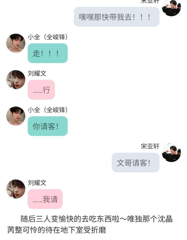 吃著吃著突然劉耀文的手下傳來一個視頻,視頻里的沈晶苪雙手被綁在墻上(就電視機里關(guān)押犯人的那個墻壁各位應(yīng)該都知道吧~)。嘴里不斷呢喃著要殺了宋亞軒,頭發(fā)被揪地凌亂總之看起來就很狼狽不堪