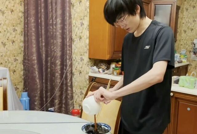 看得出來我們的宋師傅有點(diǎn)害怕躺在油鍋里的臭豆腐,他用黑色的衣服把自己嚴(yán)嚴(yán)實(shí)實(shí)地包裹起來,果然黑色的衣服和黑色的臭豆腐更配呢。