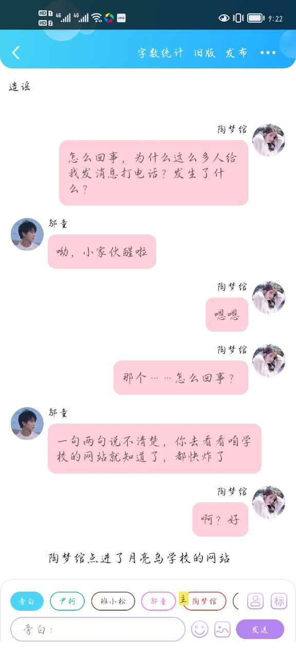 陶夢綰退出班級群聊界面,然后找到和鄔童的聊天界面,點(diǎn)了進(jìn)去