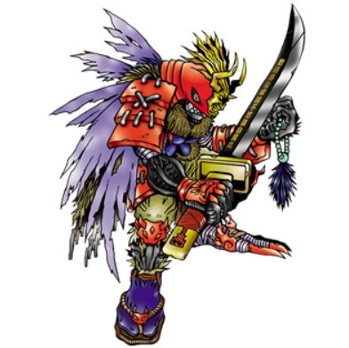 數(shù)碼機(jī)(可可)武士獸:原本是國(guó)外游戲軟件中登場(chǎng)的武士領(lǐng)主的數(shù)據(jù),但感染了計(jì)算機(jī)病毒后進(jìn)化成了鎧甲武士數(shù)碼獸。在和許多數(shù)碼獸戰(zhàn)斗后,其姿態(tài)現(xiàn)在看來(lái)也化作了慘不忍睹的落魄武士風(fēng)貌,可以說(shuō)這正是該數(shù)碼獸擁有驚人戰(zhàn)斗力和生命力的證明。在永無(wú)止盡的戰(zhàn)斗中不斷幸存下來(lái)的狂暴武者,這就是武士獸。右手所持的妖刀“白鳥(niǎo)丸”」上雕刻著禁忌咒語(yǔ) ,會(huì)奪走斬殺對(duì)象生命力,據(jù)說(shuō)這把劍每當(dāng)擊倒一千數(shù)碼獸時(shí)將會(huì)更加鋒利。