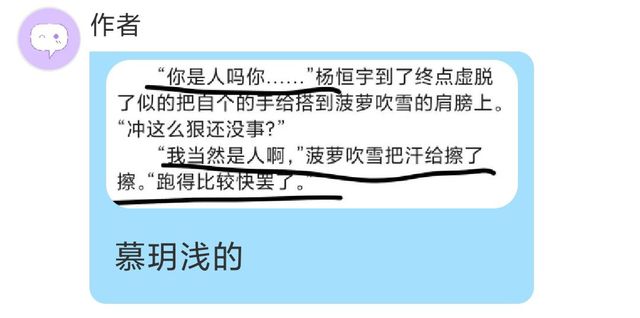 作者而且居然還有人收藏了這部作品還在評(píng)論區(qū)支持這個(gè)抄襲的家伙,我點(diǎn)進(jìn)收藏記錄和評(píng)論區(qū)看了看,那個(gè)收藏和支持的家伙曾經(jīng)在慕玥淺的這兩部被抄襲的作品評(píng)論區(qū)出現(xiàn)過,可見這個(gè)家伙是知道慕玥淺是原創(chuàng)的,既然你知道原創(chuàng)是誰還收藏和支持這個(gè)家伙的作品,這不得不讓我懷疑這個(gè)家伙和這個(gè)抄襲的家伙之間是否有什么關(guān)系