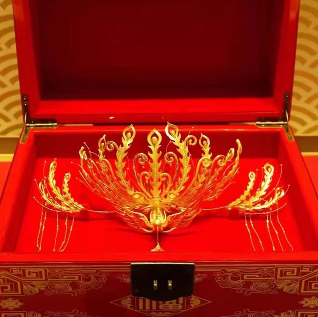 盒子里是一套純金打造的飾品,看得出來(lái)還是古法工藝制作。