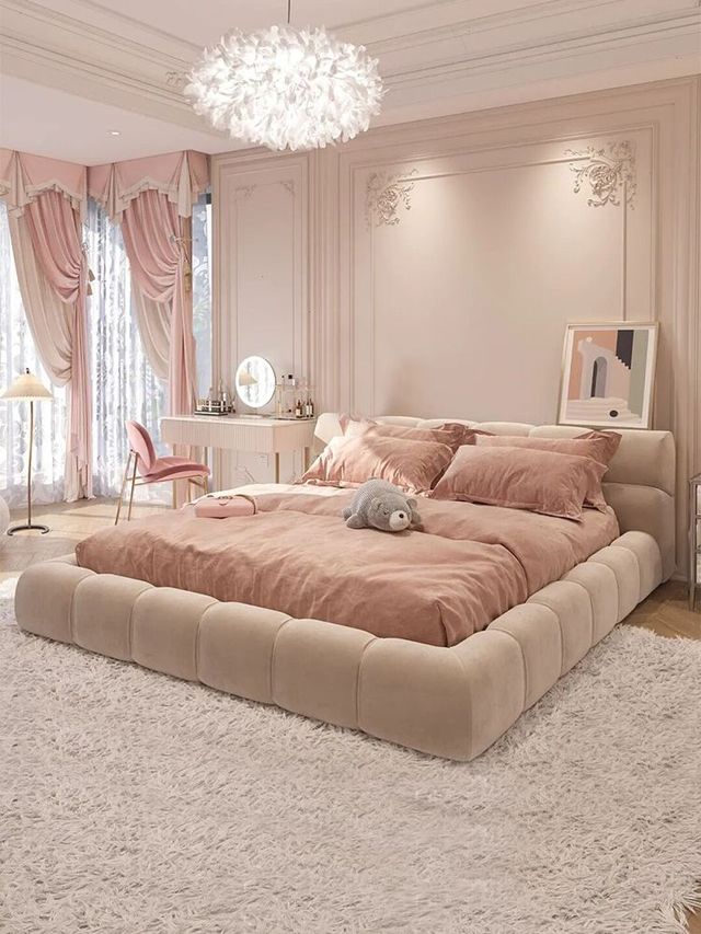 以粉色為主的房間,很符合靈兒的心意。