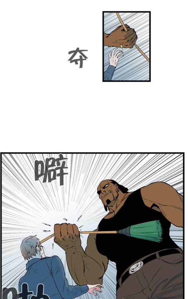 陰影出現(xiàn)在老人面前,一手奪過老人的掃帚,撇斷!