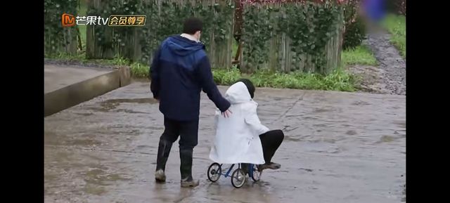 張子楓騎著小自行車,彭昱暢就在旁邊給配著西游記曲,登登登登