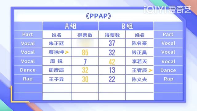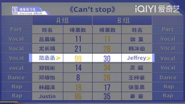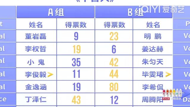A組雖然林彥俊的Rap很亮眼,但是也沒能拯救A組其他人的票數(shù)