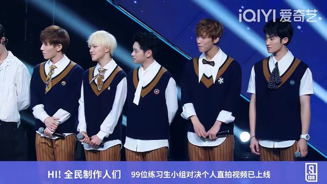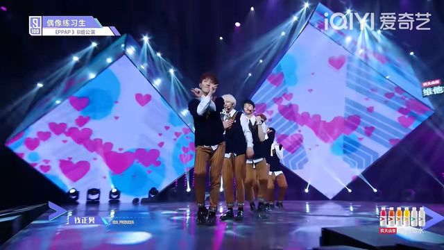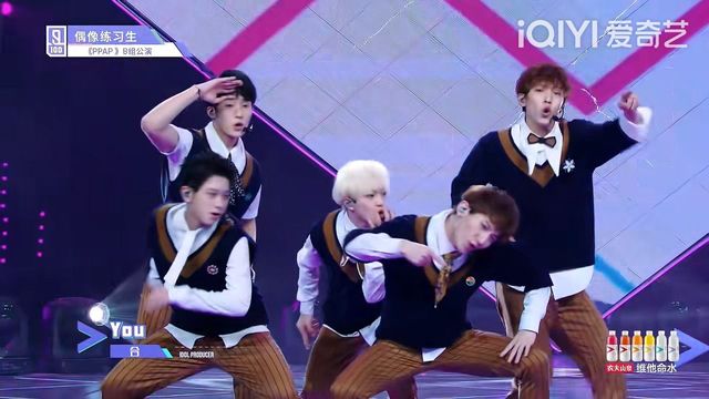 張藝興好,下面有請以《PPAP》進(jìn)行對決的兩組練習(xí)生,請上臺