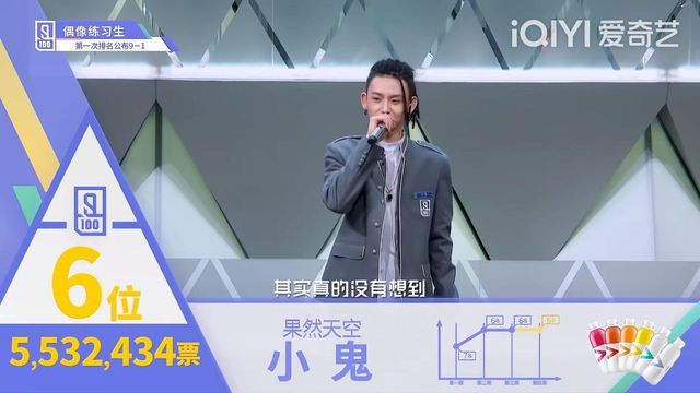 許奕然下面揭曉第五名的練習(xí)生