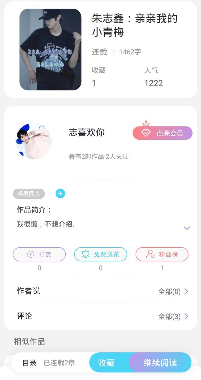 朱志鑫老婆(作者)希望大家可以支持一下